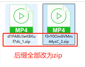 6.如果是两个或两个以上的mp4文件,属于分卷压缩,请务必把每个mp4后缀都改为zip